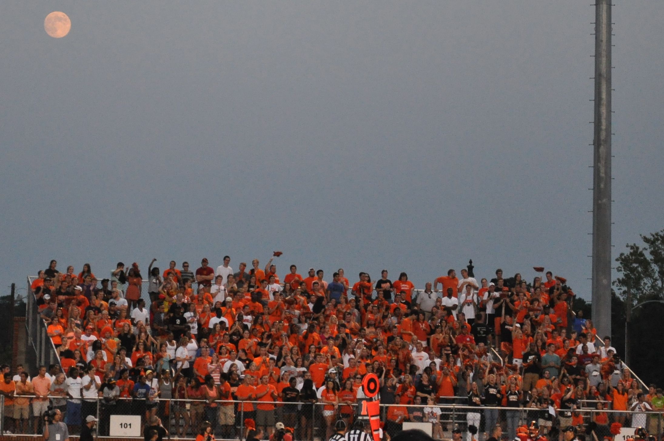 As I rode through Buies Creek coming back from an event out of town, I was met with a sight that filled me with pride–lights and a sea of orange. The football field was lit up in bright lights for the second game of the season and showcased fans dressed to support thier Fighting Camels. It was definitely a sight that could not be missed riding down 421 HWY.