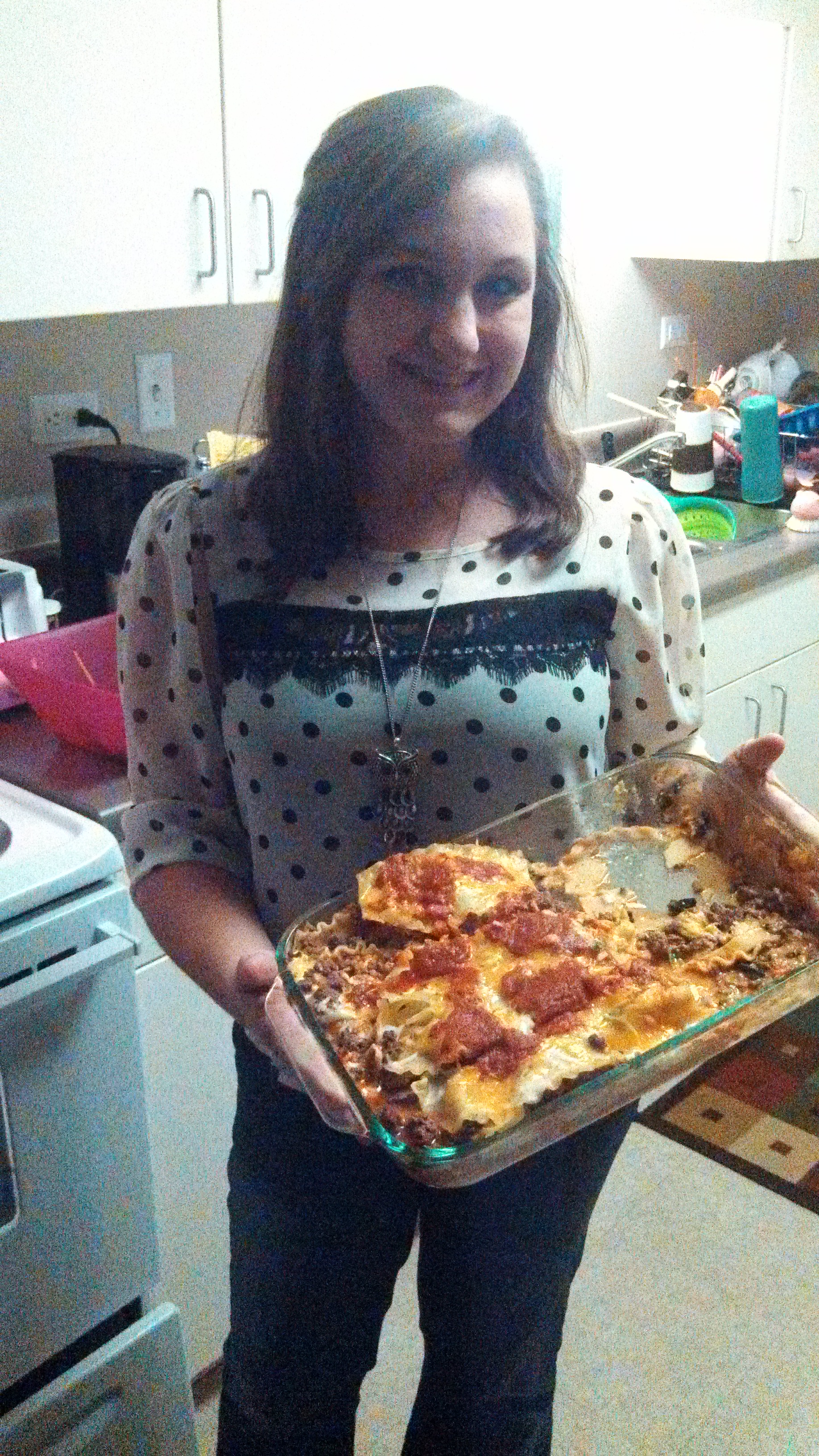 Upon entering Hannah Joyce’s apartment, a delightful aroma envelops you and makes your mouth water. On the stove is a dish full of lasagna… the definition of yummy! This lasagna has a personal touch, though, and not because it was homemade. The spinach lasagna was made with deer meat that Hannah harvested herself. It certainly explains her pink camo apron she is wearing.