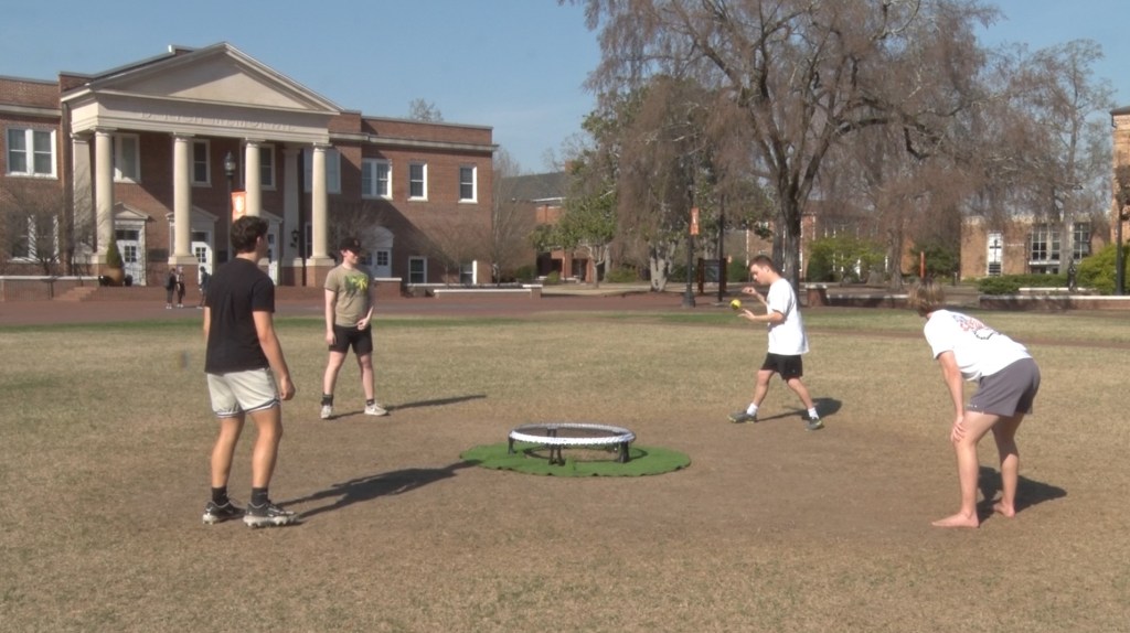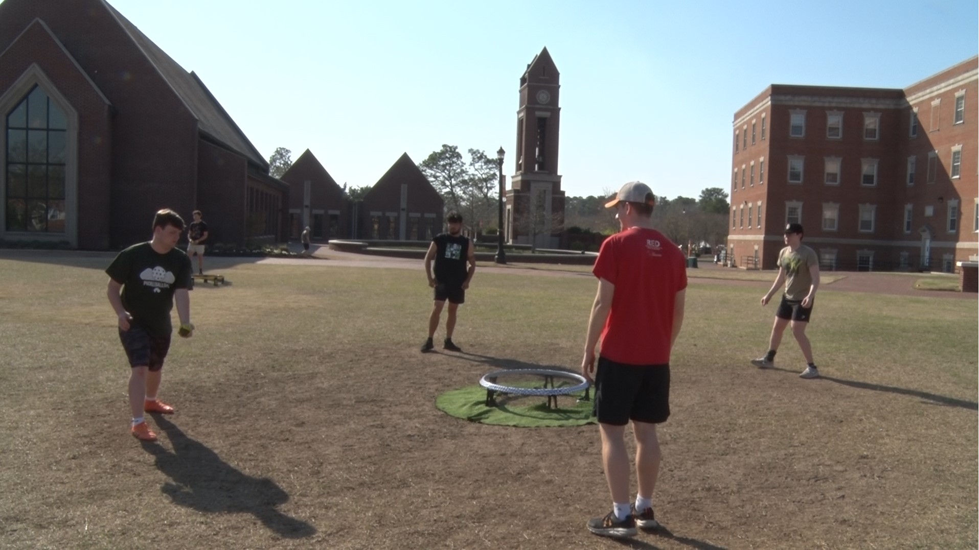 CAMPUS PHOTO COLLAGE : SPIKEBALL Posted on March 19, 2024March 19, 2024 by PineBurr Yearbook in Uncategorized Spring is in the air in Buies Creek meaning students are spending more time outdoors. Spikeball is one of the most popular games on campus. Here are some photos from a group of students that meet to play every Tuesday and Thursday. By Mercer Farha Share this: Share on Facebook (Opens in new window) Facebook Share on X (Opens in new window) X Share on Tumblr (Opens in new window) Tumblr Share on Pinterest (Opens in new window) Pinterest Like Loading... Related