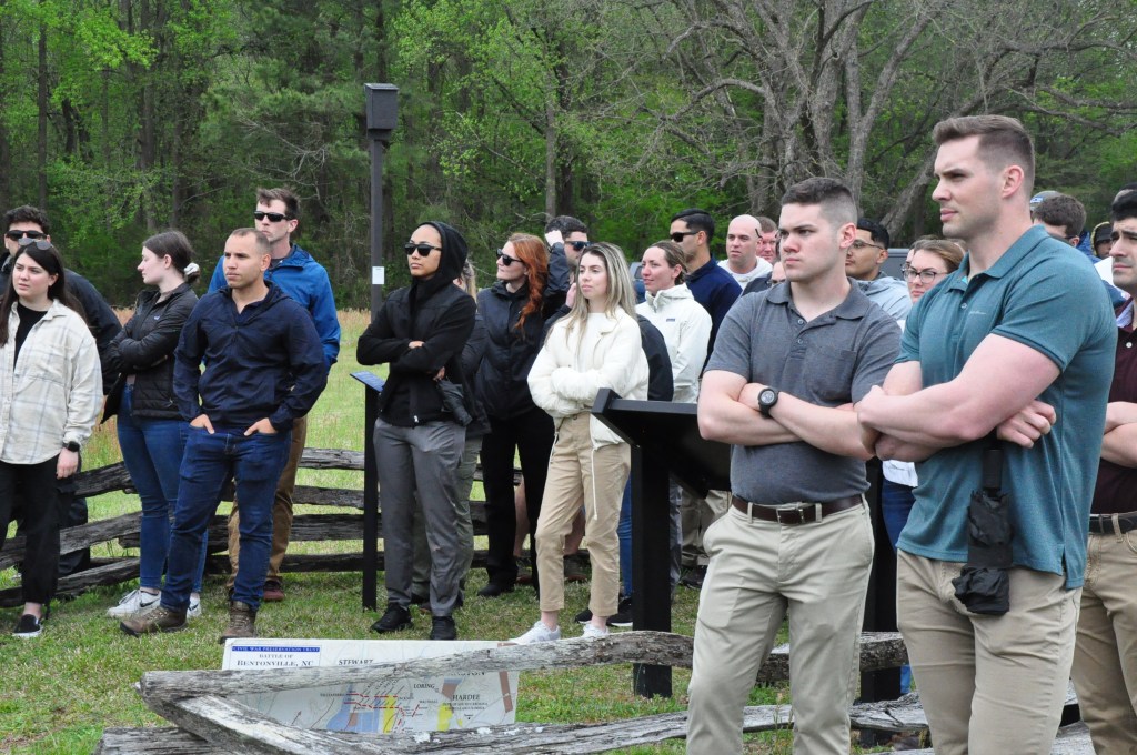 In the first week of April, CU ROTC Students spent the day at the site of the Battle of Bentonville historical driving tour. The whole trip is part of the planned schedule of ROTC cadets and was taught by all the schools present at the trip. The point of the staff ride is for officers to learn all aspects of a battle and to learn the history of the battle. To learn the past is to not repeat it. The battlefield remains an important landmark in the history of North Carolina and the United States as a decisive victory in the outcome of the Civil War. The ROTC students learned that the battlefield is not just about strategy but also about moral and ethical qualms that officers have to make decisions that can cost lives.